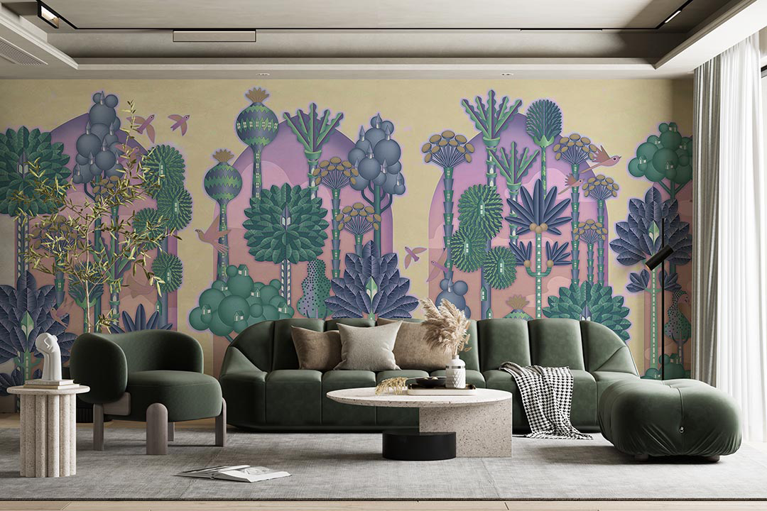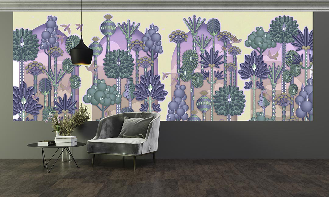 Bu tasarım, tropikal bir ormanın gizemli dokusunu ve canlılığını yansıtıyor. Yaprakların oluşturduğu senfoni ve renklerin ahenkli dansı, izleyiciyi büyülü bir dünyaya davet ediyor. Bu eser, doğanın zenginliğini ve çeşitliliğini kutlayarak mekanlara egzotik bir atmosfer katıyor.