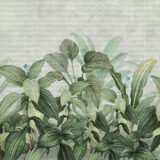 Bu tasarım, yeşilin farklı tonlarındaki yaprakların canlılığını ve ferahlığını yansıtıyor. Yaprakların doğal dokusu ve desenleri, mekana tropikal bir ormanın huzurunu ve canlılığını taşıyor. Bu tasarım, izleyicisine doğanın tazeliğini ve dinginliğini sunarak ferahlatıcı ve davetkar bir atmosfer yaratıyor.
