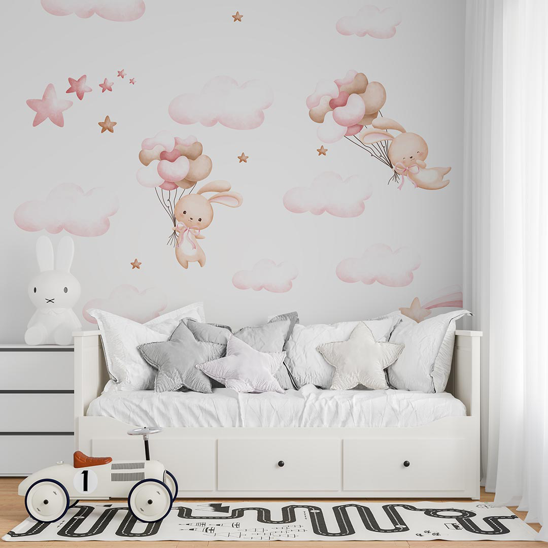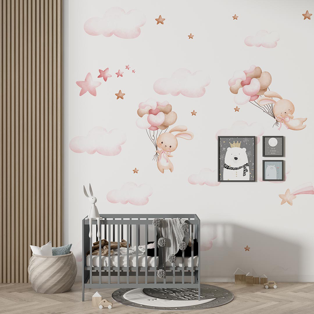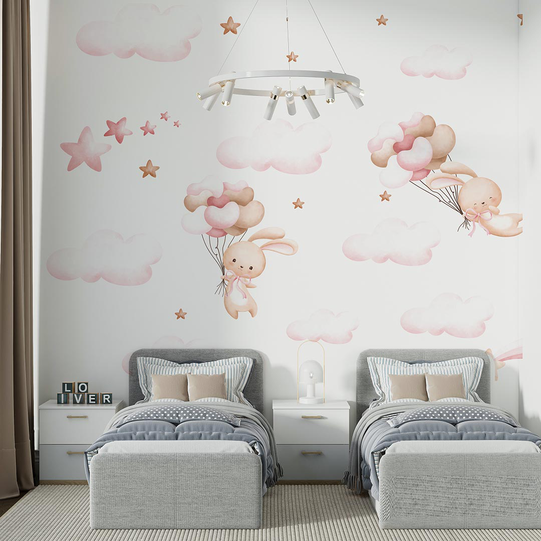 Bu tatlı görselde, sevimli bir tavşan, rengarenk balonlarla süslenmiş bir hayal dünyasında süzülüyor. Pastel tonlardaki bulutlar ve parıldayan yıldızlar, huzurlu ve masalsı bir atmosfer yaratıyor. Tavşanın neşeli bakışları ve uçan balonların hafifliği, izleyiciye umut ve mutluluk duygusu aşılıyor. Bu tasarım, çocukların hayal güçlerini harekete geçirerek onları tatlı rüyalara davet ediyor.