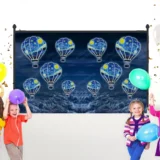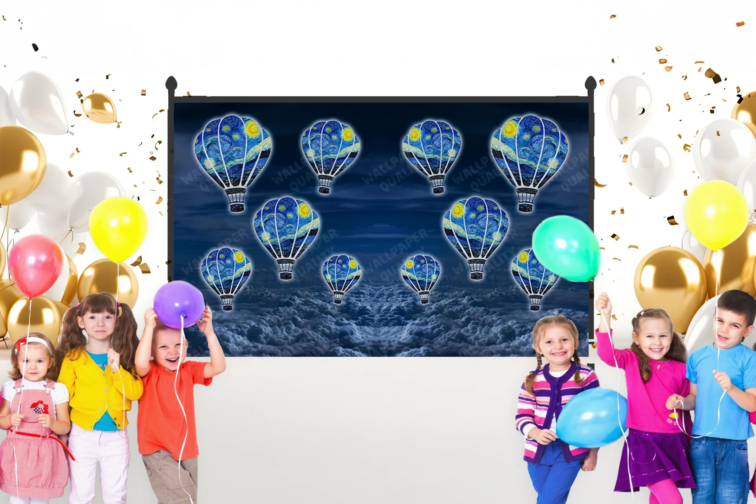 Bu büyüleyici tasarım, Van Gogh’un ünlü “Yıldızlı Gece” tablosundan ilham alıyor. Derin mavi tonları ve hareketli fırça darbeleri, gece gökyüzünün mistik ve rüya gibi atmosferini yansıtıyor. Balonların eklenmesiyle tasarıma fantastik bir hava katılıyor. Bu görsel, izleyiciyi hayal gücünün sınırlarında bir yolculuğa çıkarıyor.