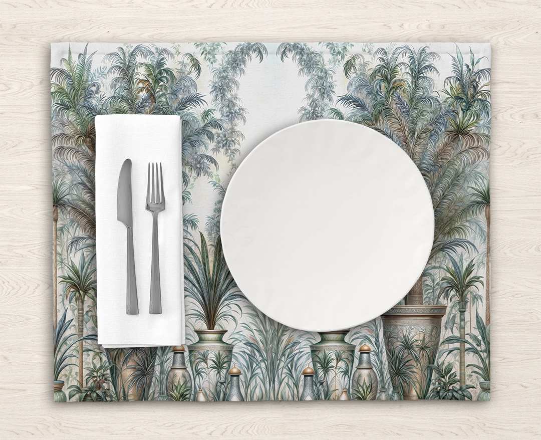 • Runner: Uzun bir masanın ortasına yerleştirildiğinde, tropik bitkilerin zarif desenlerini sergiler. Yemeklerinize sofistike ve şık bir dokunuş katar.