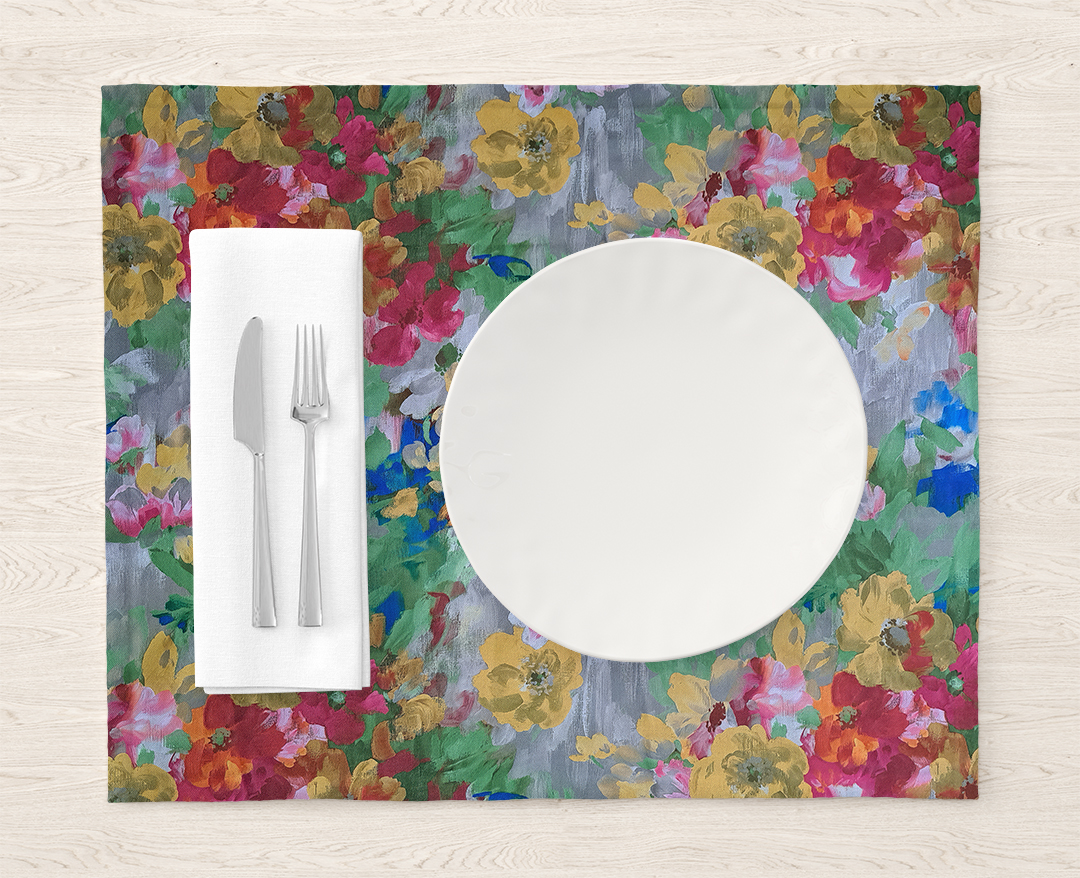 Bu görsel, canlı renklerin ve çiçeklerin coşkusunu yansıtıyor. Kırmızı, sarı, pembe ve mavi tonlarının bir araya geldiği bu tasarımda, çiçeklerin enerjisi ve baharın tazeliği hissediliyor. Bu eser, mekanlara canlılık ve neşe katarken, baharın coşkusunu ve tazeliğini de yansıtıyor.