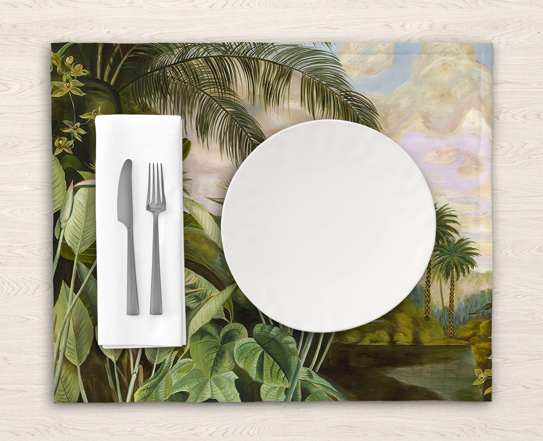 Bu tasarım, tropik bir ormanın gizemli ve büyüleyici atmosferini yansıtıyor. Yemyeşil palmiye ağaçları, derin gölge oyunları ve zengin yeşil tonları, izleyiciyi tropikal ormanın kalbine götürüyor. Her detay, tropik ormanın gizemini ve büyüleyici atmosferini yansıtarak mekanınıza hem doğal bir zarafet hem de egzotik bir cazibe katıyor. Bu eser, yaşam alanlarınıza tropik bir ormanın kapılarını aralıyor.