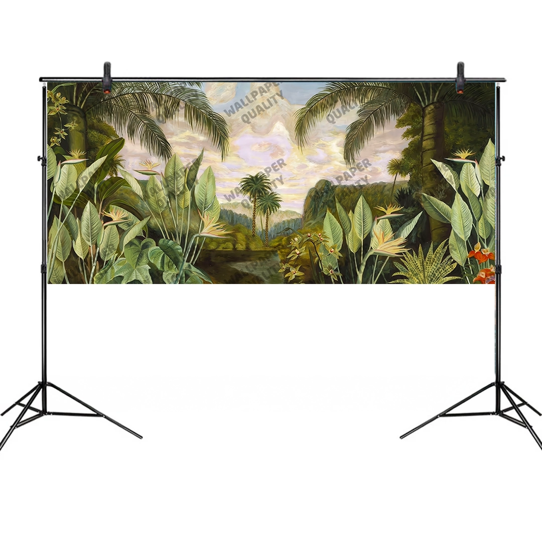 Bu tasarım, tropik bir ormanın gizemli ve büyüleyici atmosferini yansıtıyor. Yemyeşil palmiye ağaçları, derin gölge oyunları ve zengin yeşil tonları, izleyiciyi tropikal ormanın kalbine götürüyor. Her detay, tropik ormanın gizemini ve büyüleyici atmosferini yansıtarak mekanınıza hem doğal bir zarafet hem de egzotik bir cazibe katıyor. Bu eser, yaşam alanlarınıza tropik bir ormanın kapılarını aralıyor.