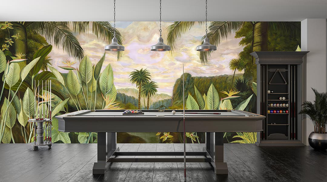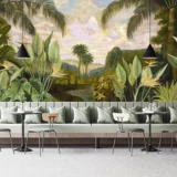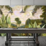Bu tasarım, tropik bir ormanın gizemli ve büyüleyici atmosferini yansıtıyor. Yemyeşil palmiye ağaçları, derin gölge oyunları ve zengin yeşil tonları, izleyiciyi tropikal ormanın kalbine götürüyor. Her detay, tropik ormanın gizemini ve büyüleyici atmosferini yansıtarak mekanınıza hem doğal bir zarafet hem de egzotik bir cazibe katıyor. Bu eser, yaşam alanlarınıza tropik bir ormanın kapılarını aralıyor.