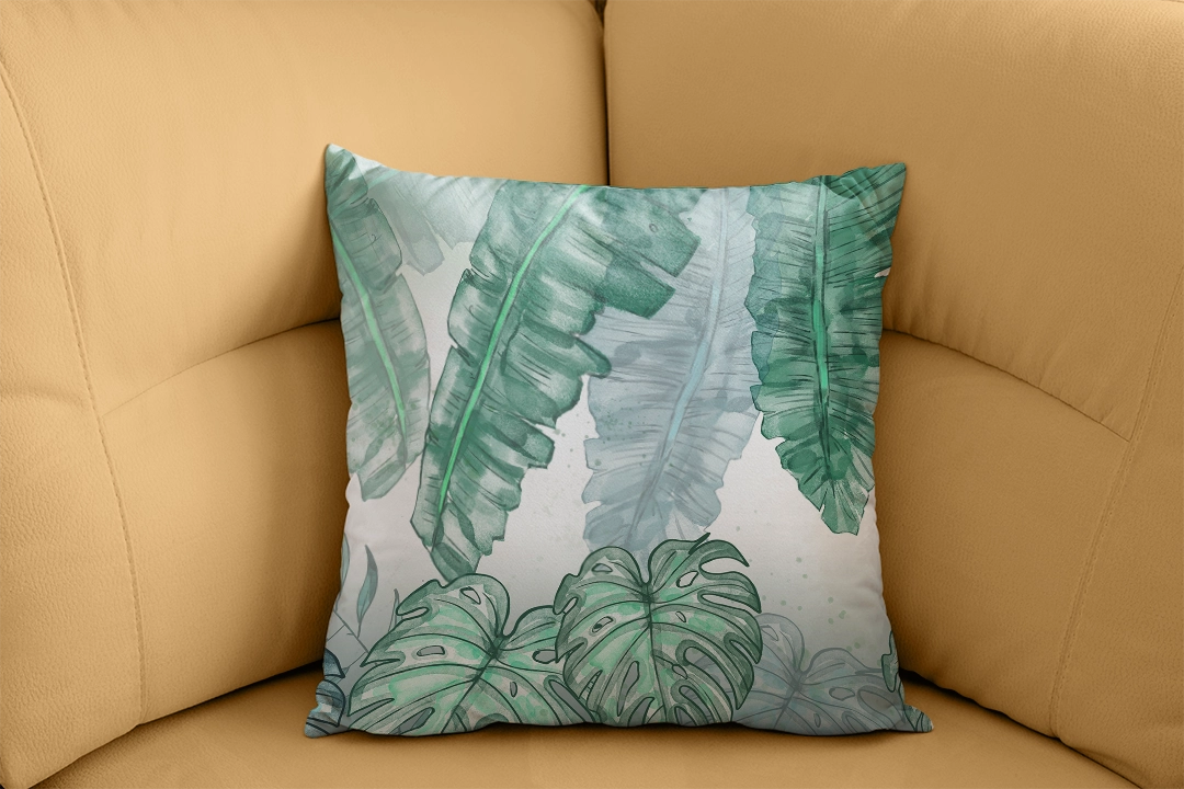 • Kırlent: Koltuk veya yatakta kullanıldığında, pastel yeşil ve mavi yaprakların desenlerini yaşam alanınıza taşır. Dekorasyona hem canlılık hem de konfor katar.