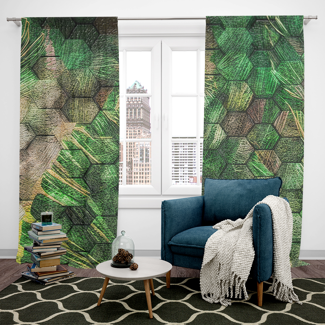 Bu tasarım, doğanın organik güzelliğini modern geometrik formlarla bir araya getiriyor. Yeşil yaprakların canlılığı ve doğanın huzuru, geometrik desenlerin düzeni ve modernliği ile buluşarak ortaya zamansız bir denge çıkıyor. Bu eser, doğanın ve modern sanatın uyumunu yansıtarak mekanlara sofistike ve huzurlu bir atmosfer katıyor.