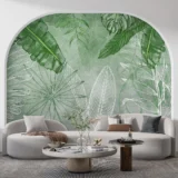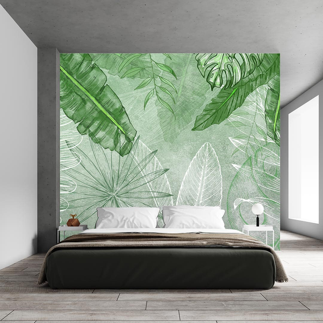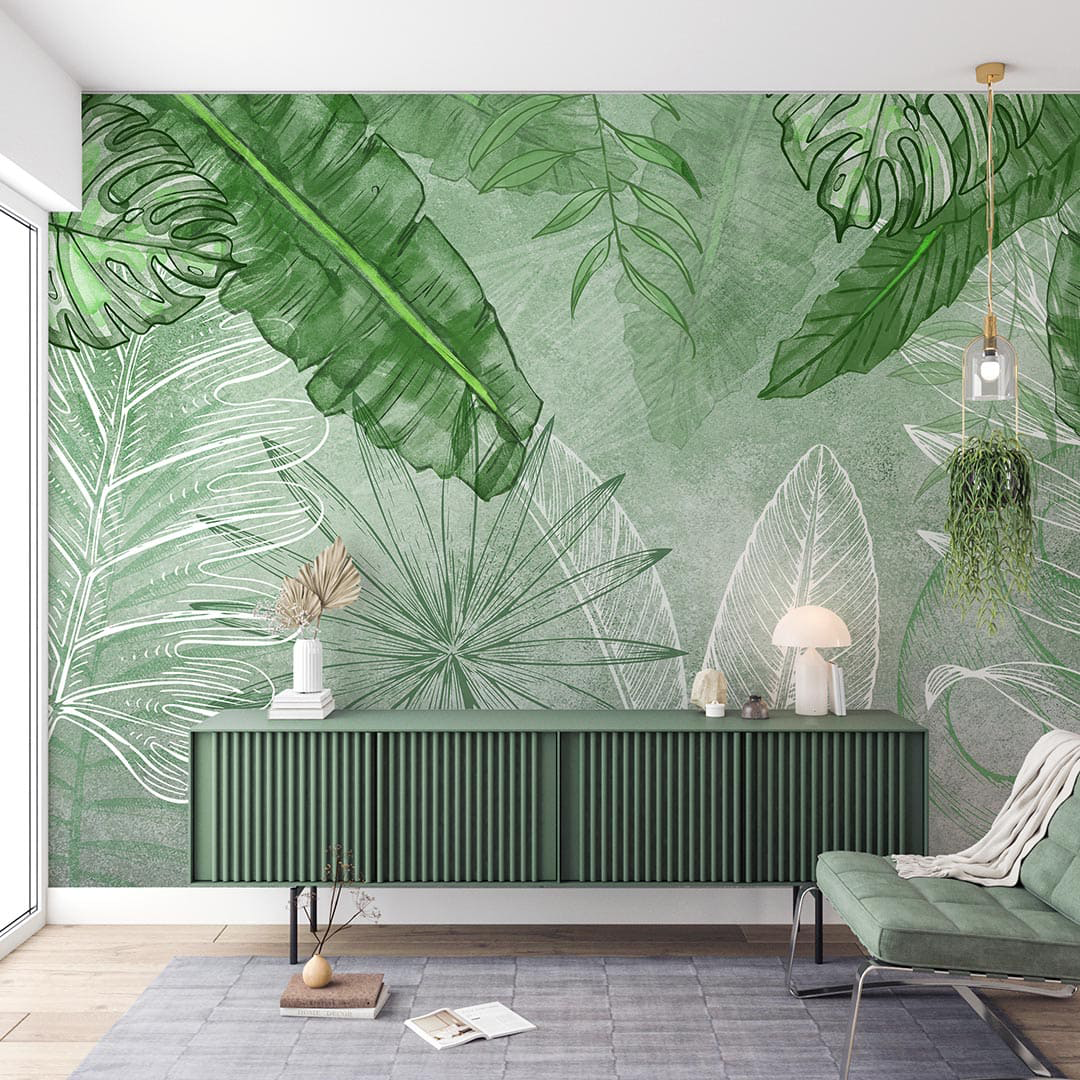 Bu tasarım, tropik yaprakların canlılığını ve tazeliğini yeşil çizgilerin enerjisiyle bir araya getiriyor. Yaprakların doğal formu, çizgilerin dinamizmiyle buluşarak mekana ferah ve huzurlu bir atmosfer katıyor. Yeşil tonlarının rahatlatıcı etkisi, çizgilerin hareketiyle canlanarak ortama dinginlik ve canlılık hissi veriyor. Bu tasarım, doğanın tazeliğini ve huzurunu modern bir yorumla mekanlarınıza taşıyor.
