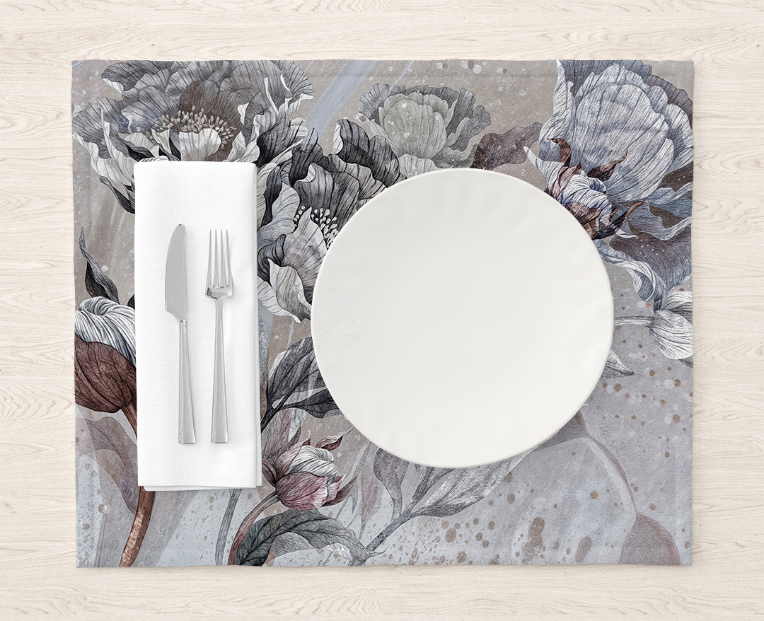 Bu sofistike tasarım, gri tonlarının zamansızlığı ve modern cazibesi ile çiçeklerin dingin güzelliğini bir araya getiriyor. Her bir çiçek, gri tonlarının farklı nüansları ile hayat bulurken, desene modern ve zarif bir hava katıyor. Bu sanat eseri, mekanlarına dinginlik ve şıklık katmak isteyenler için mükemmel bir seçimdir.