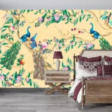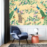 Bu büyüleyici tasarım, iki zarif tavus kuşunun tropikal bir bahçedeki ahengini yansıtıyor. Tavus kuşlarının zarif duruşları, tropikal bitkilerin canlılığı ve doğanın huzurlu melodisi, izleyiciye keyifli ve rahatlatıcı bir deneyim sunuyor. Detaylı çizimler ve zengin renkler, mekanlara sofistike bir dokunuş katıyor.