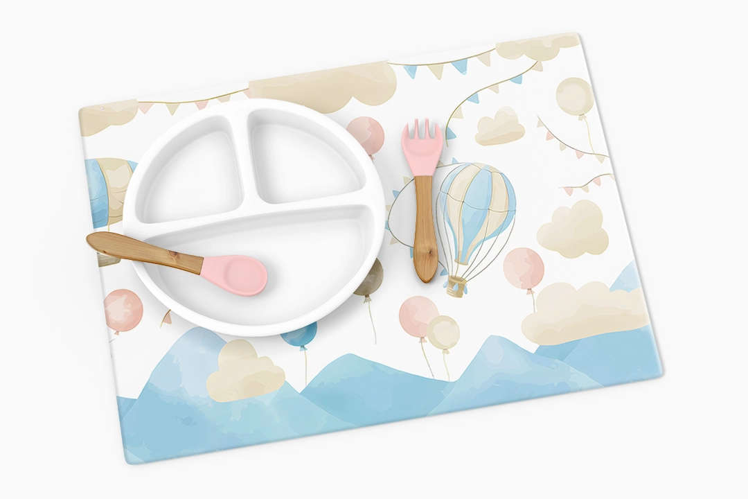 Bu tasarım, gökyüzünde süzülen zeplinler ve rengarenk balonlarla dolu eğlenceli bir çocuk dünyasını yansıtıyor. Pastel tonlardaki bulutlar ve sevimli desenler, neşeli ve huzurlu bir atmosfer yaratıyor. Zeplinlerin ve balonların hareketi, çocukların hayal gücünü harekete geçirirken, gökyüzündeki bu renkli yolculuk onlara özgürlük ve macera duygusu aşılıyor. Bu görsel, çocukların düşlerindeki dünyayı yansıtarak onlara keyifli bir deneyim sunuyor.